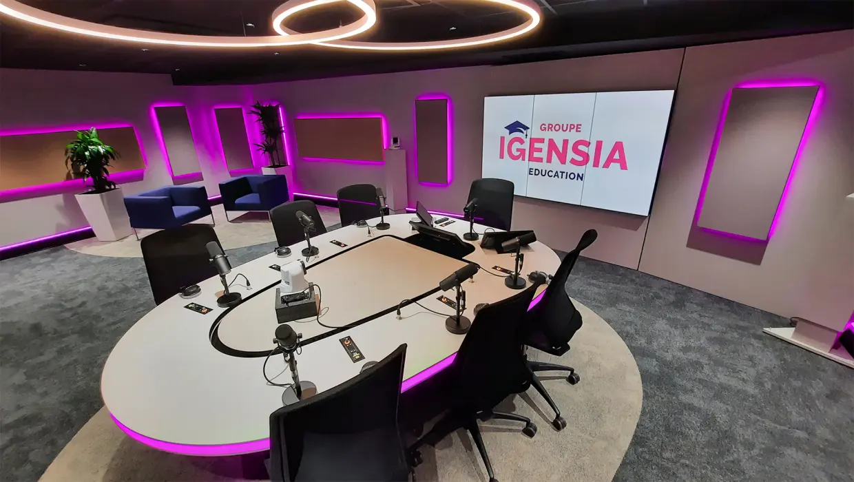 Équipé de caméras tourelles, d’éclairage professionnels (grille de projecteurs, LED…) et d’un prompteur